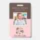 Bakery Pastry Chef Employee Photo ID Badge. Personalize this custom design with your own employee photo, name, and business details. This design features an elegant cake logo against a pink background. Perfect for bakeries, cake and pastry shops, cafes, caterers, restaurants or any food service related business.