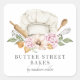 Modern and whimsical watercolor bakery pastry chef product labels, with a cute watercolor bakers hat and tools and a blush pink watercolor wash background. Personalize your name in a modern script signature type.