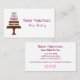 Illustrated with a cute cake and magenta text on white background this bakery business card features space for your social media handles. Perfect for all bakers, catering and food businesses.
