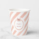 Charming paper cups featuring soft pastel pink watercolor stripes with a fun, playful feel.