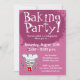 Baking party invitations | Custom invites. Personalizable announcement text and background colour. Have fun! Little chef cartoon with hat, apron, spoon and hand mixer.