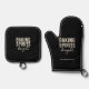 Bring festive cheer to the kitchen with this Baking Spirits Bright oven mitt and pot holder set in a sleek black colorway. Perfect for holiday baking, cookie parties, and cozy family traditions, this modern Christmas design features warm cream lettering and an optional family name for a personalized touch.