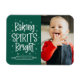 Send holiday cheer to friends and family with our red Baking Spirits Bright holiday photo magnet. The cute baking-themed holiday magnet features white dots (or snow) and stars accenting the phrase "Baking Spirits Bright" that is displayed in white, hand-lettered text against a green background. Personalize the magnet by adding your last name inside of the the rolling pin frame and a photo. Designed to coordinate with our Baking Spirits Bright holiday collection.
