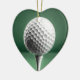 Une balle de golf blanche sur un tee blanc devant un arrière - plan vert posé sur un ornement décoratif en forme de coeur