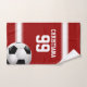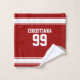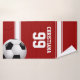 Parfait pour le fan de football ou le joueur de football dont les couleurs de l'équipe sont rouge et blanc, avec un style maillot de football en rose avec des rayures blanches et du texte personnalisable pour leur nom et leur numéro. Un ballon de football est également présenté dans le cadre du design. Un cadeau amusant, sportif et de football féminin.
