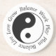 Balance - Work Play Plan Live Love Grow - sandstone coaster with black script lettering and yin yang symbol.