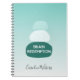 Three Zen balancing stones are stacked on top of one another as a metaphor for brain injury recovery. With brain injury, this balancing act is part of daily life as TBI survivors rebalance body, mind, personality, and pretty much everything else. But like the Zen masters who trained themselves to balance rocks and boulders, brain injury survivors can also create the balance needed to live a happy and productive life. This aqua and teal coloured notebook can be personalized with the survivor's name on the "Personalize" template at checkout. We created this brain redemption notebook for survivors to keep a journal of their recovery steps