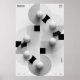 This striking minimalist wall art poster, from the "Balanza Geometric Series," captivates with its precise and repetitive patterns. The design features six perfectly aligned circles, each meticulously bisected into stark black and white halves, creating a captivating visual play of contrast and unity. Within each half-circle, fine concentric lines radiate outwards, drawing the eye into a subtle hypnotic effect.