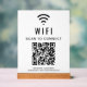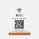 Panneau acrylique blanc moderne pour permettre à vos clients, clients ou invités de se connecter facilement à votre réseau wifi. Téléchargez le code QR de votre wifi et ajoutez d'autres détails, tels que le nom et le mot de passe du réseau, dans une simple typographie. Parfait pour les bureaux, les hôtels, les locations de vacances, etc.