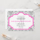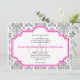 Balck Damask Hot Rose White Wedding Invitations. Ces invitations Hot Pink mariage damassé avec un cadre voûté et du texte modèle pour vous de customiser. Vous pouvez modifier la police du texte en cliquant sur "customiser" et en utilisant les outils personnalisés à droite de l'image d'invitation. Si vous avez besoin d'aide, n'hésitez pas à cliquer sur "Contact" et envoyer une demande par courriel.