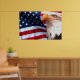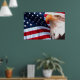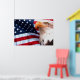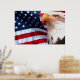 Bald Eagle 4 juillet affiche Venes avec une belle tête de Bald Eagles vous regardant avec le drapeau américain derrière lui.Ceci est une belle photo sur cette affiche