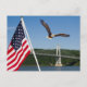 A post card with a Bald Eagle and the American Flag with the Mid Hudson Bridge in the background.