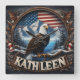 Bald Eagle by Mountains and Flag Square Wall Clock
