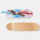 Bald Eagle Flies over a splash of red, white &blue Skateboard