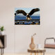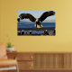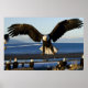 Bald Eagle ocean poster Comes with a beautiful Flying Bald Eagle in the air over the ocean with other eagles on the ground around him with the beach in the beach ground.this is a beautiful photo on this poster