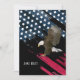 Landing bald eagle on American flag graphic on black background for scout ceremony.