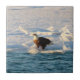 Bald eagle on pristine icy lake stands out on decorative ceramic tile. Dramatic nature moment captured for display in home or office!