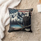 Bald Eagle Perched by Mountain Lake With Flag Throw Pillow