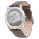 The watch looks really great! Very sharp and well done. The leather band is really nice, though for a man's watch I think it should be longer. Unfortunately, it isn't big enough for my husband's wrist but I will get a replacement because he is very excited to wear it!