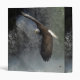 A majestic American Bald Eagle enjoys the spray of the waterfalls as he soars past on his way to the nearby forest.