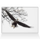 A magnificent bald eagle with wings fully spread as it launches from a tree limb.