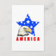 Bald Eagle in front of blue star with several white stars inside of it. America is written at bottom.