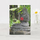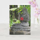 This grey stone statue of a seated human figure holds a red hibiscus flower. It sits peacefully meditating in the Peace Garden of the Bali Botanical Gardens, against a background of green jungle plants. Green ferns and palms interact with grey trunks and black shadows. On the lower portion of the image is the word, "Tranquillity. . ." Inside is the message, ". . .Peace, and Joy on your birthday! Photo taken in Ubud, Bali, in Indonesia. Copyrght Gail Storrs 2006.