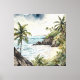In this breathtaking watercolor painting, the tropical allure of a Bali beach is captured in all its splendour. The artist's skilful brushwork brings to life the crystalline waters, powdery sands, and swaying palms that define the island's paradise.