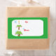 Cette étiquette cadeau de Noël a un arbre surmonté de neige avec des flocons bleus qui tombent. ©2010 JD Digi Designs