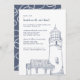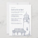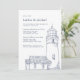 L'invitation à dîner de répétition chic côtier comporte une illustration de phare dessinée à la main de style vintage, avec les détails de votre dîner de répétition en bleu marine classique. Parfaits pour les répétitions et célébrations de plage, d'été ou nautiques, ces invitations de style côtier renversent vers un motif de corde nautique en blanc sur le bleu du port. Comprend l'espace pour la répétition de la cérémonie et le dîner ou la célébration suivant.