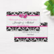 Cette étiquette cadeau mariage damassé en noir et blanc a une paire de coeurs rejoints IMPRIMÉS avec parties scintillant rose et des bijoux qui correspondent au faire-part de mariage ci-dessous. S'il y a d'autres articles correspondants dont vous avez besoin, veuillez envoyer un courriel à owlstudio@gmail.com.