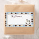 Pois bleu et brun imprimé avec étiquette de cheval à bascule sucré.