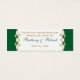 Cette moderne forêt vert, blanc et or scrolls mariage faveur grâce à une marque de bénédiction irlandaise sur elle a un arrière - plan faux relief vert damassé, avec un faux parties scintillant or (IMPRIMÉE) orné de parchemin fleuri avec deux shamrocks d'or décoratif qui correspond au faire-part de mariage irlandais, celtique ou St. Patrick's Day montré ci-dessous. The Irish Blessing dit : "Que vos poches soient lourdes et que votre coeur soit léger. Puisse la chance vous poursuivre chaque matin et chaque nuit." **REMARQUE, si vous changez la taille de la carte, ou si vous changez les polices, ou la taille de la police, une partie de la conception et/ou du texte peut être coupé. Tout va s'imprimer comme vous le voyez sur votre écran. Je ne verrai pas les changements que vous faites, et Zazzle ne corrigera rien (fautes de frappe, mauvais alignement, etc.). Le texte est entièrement personnalisable. Si vous avez besoin d'aide pour ce produit, envoyez-moi un courriel AVANT de passer votre commande. Si vous avez besoin d'autres articles correspondants, veuillez envoyer votre demande par courriel à niteowlstudio@gmail.com.