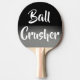 A silver and black ping pong paddle with the text "Ball Crusher". It makes a great gift for the pro ping pong player in the family.