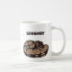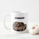 This coffee mug features a realistic style illustration of a coiled ball python snake in dark brown and tan. It's ready to be personalized with a name in dark brown lettering. The graphic and name appear on both sides of this mug. Makes a great gift for pet snake owners.