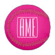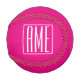 Balle De Baseball 3 Initiales Monogramme | Blanc sur rose chaud