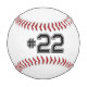 Nom sur baseball blanc avec numéro d'équipe au verso. Le nom et le numéro peuvent être modifiés.