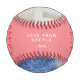 Coupable 1er Père`s Day Pink Script 2 Photo Collage Baseball. Conception sympa pour le nouveau père. Écriture tendance Joyeuse Fête des Pères, message avec nom et année. Ajoutez 2 photos préférées et faites un cadeau sucré pour un nouveau père pour la fête des pères.