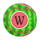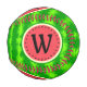 Ce joli modèle de base-ball monogramme de pastèque a un fruit rond qui semble avoir été tranché, donc la chair rose-rouge juteuse du melon se manifeste à travers, avec un cercle de graines de pastèque noires. La baie a également un motif à croûte mouchetée vert moucheté.