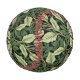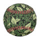 Un imprimé feuillage avec un feuille vert clair presque olive ou sage entrelacé dans des verts plus foncés. Une ombre de vert chasseur ou de vert foncé de forêt crée la grande majorité des feuilles. Sur un arrière - plan de noir.