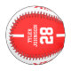 Celebrate team pride with this personalized red and white team baseball, designed for players, coaches, parents, and fans. This custom sports keepsake features your team’s logo, the player’s name, and their jersey number, all styled in a bold athletic layout with a clean sporty line running through the design.