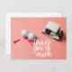 "Exprimez votre gratitude avec style avec notre carte postale de remerciement Baby Girl Golf Ball ! Avec un charmant design de balle de golf rose orné de 'Merci' en écriture élégante, cette carte postale est le moyen idéal pour exprimer votre appréciation après avoir célébré l'arrivée de notre petit bout. Personnalisez le verso avec votre message sincère pour les amis et la famille qui ont rendu notre journée spéciale. Envoyez un témoignage de notre gratitude sincère avec cette adorable carte postale, célébrant l'amour et le soutien alors que nous accueillons notre petite fille dans le monde."