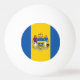 Boule de ping-pong avec drapeau de la ville de Philadelphie, Pennsylvanie; drapeau avec trois bandes verticales de bleu et jaune avec armoiries de la ville au centre