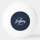 Cette balle de ping-pong personnalisée est dotée d'un monogramme gris bleu et d'un nom de script rétro blanc sur un arrière - plan bleu marine.