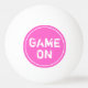 Boule de ping-pong montrée en rose/blanc chaud avec texte; Jeu On. Customisez cet objet ou achetez tel quel.