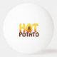 Pomme de terre chaude avec un peu de boue brune entourée de flammes qui se jettent de l'O dans Hot. Le mot chaud est dans un dégradé jaune à orange et le mot pomme de terre est brun.