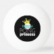 Le designer Turquoise Blue Aqua Turquoise Ping Pong Ball avec la citation "Pong Princess" et le nom personnalisé imprimé avec une balle de ping-pong portant une illustration de la couronne de tiare.