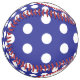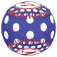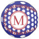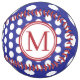 This monogrammed softball features preppy navy blue and white polka dots. Personalize the red and white monogram with your choice of initials. Great to use as gift bags and party favors.