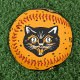 Ce softball sur mesure a un vieux classique joyeux visage de chat noir sur un arrière - plan orange couvert de minuscules étoiles noires.