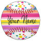 Customisez un softball avec votre propre nom ou texte! Il suffit de suivre les invites sous personnaliser, pour les zones de texte avant et arrière. Play Ball! Une belle combinaison de rayures et de coeurs, rose, jaune violet, rouge, bleu, pêche, vert et blanc ! Conçu pour vous par HAMbyWhiteGlove